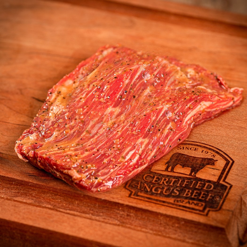 Une des pièces les plus populaires de la boucherie! Les amateurs de cuisson rosée seront servis avec toute la saveur et la tendreté qu’offre notre bavette Angus AAA CAB. Marinade du Boss (Fines Herbes, Poivres). Emballé sous-vide, frais.